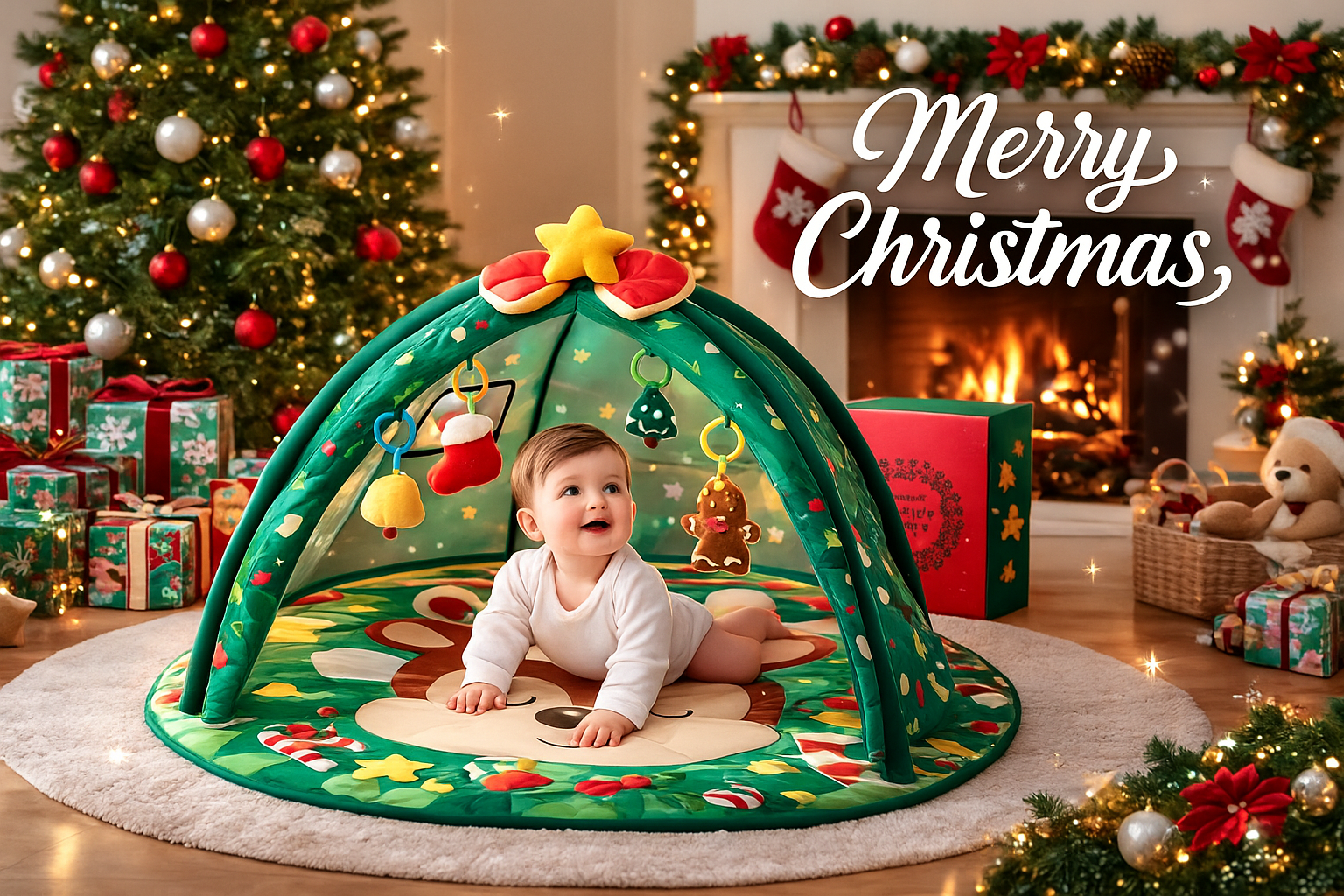 This baby play mat is the perfect Christmas gift, featuring a festive gift box, classic holiday colors, and six sensory toys to engage sight, sound, and touch. Its 2-in-1 tent and mat design offers a safe, spacious area for rolling, crawling, and tummy time. Made with soft, OEKO-TEX certified materials, it supports development from 0–18 months—making it a meaningful holiday present and a long-lasting learning companion.